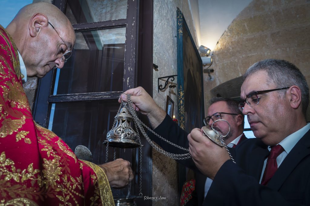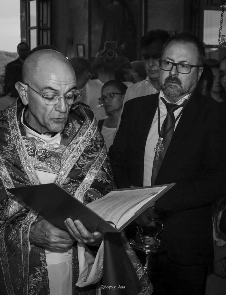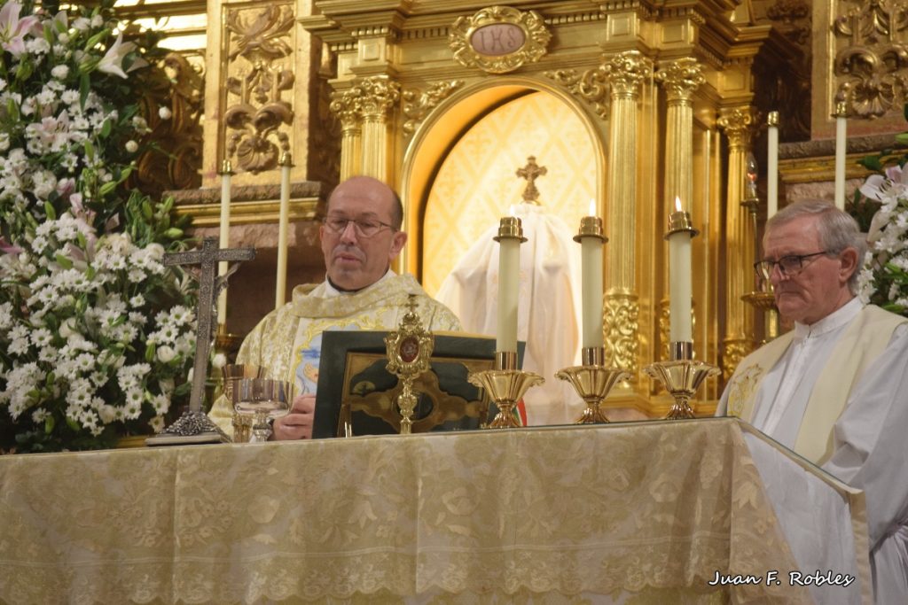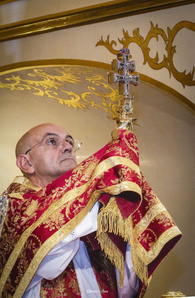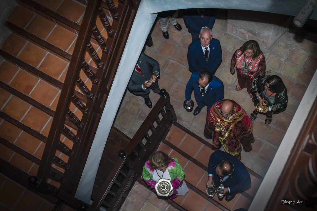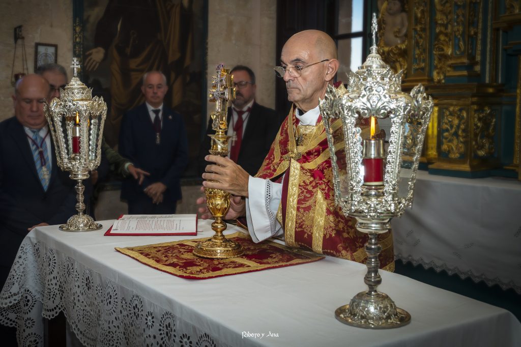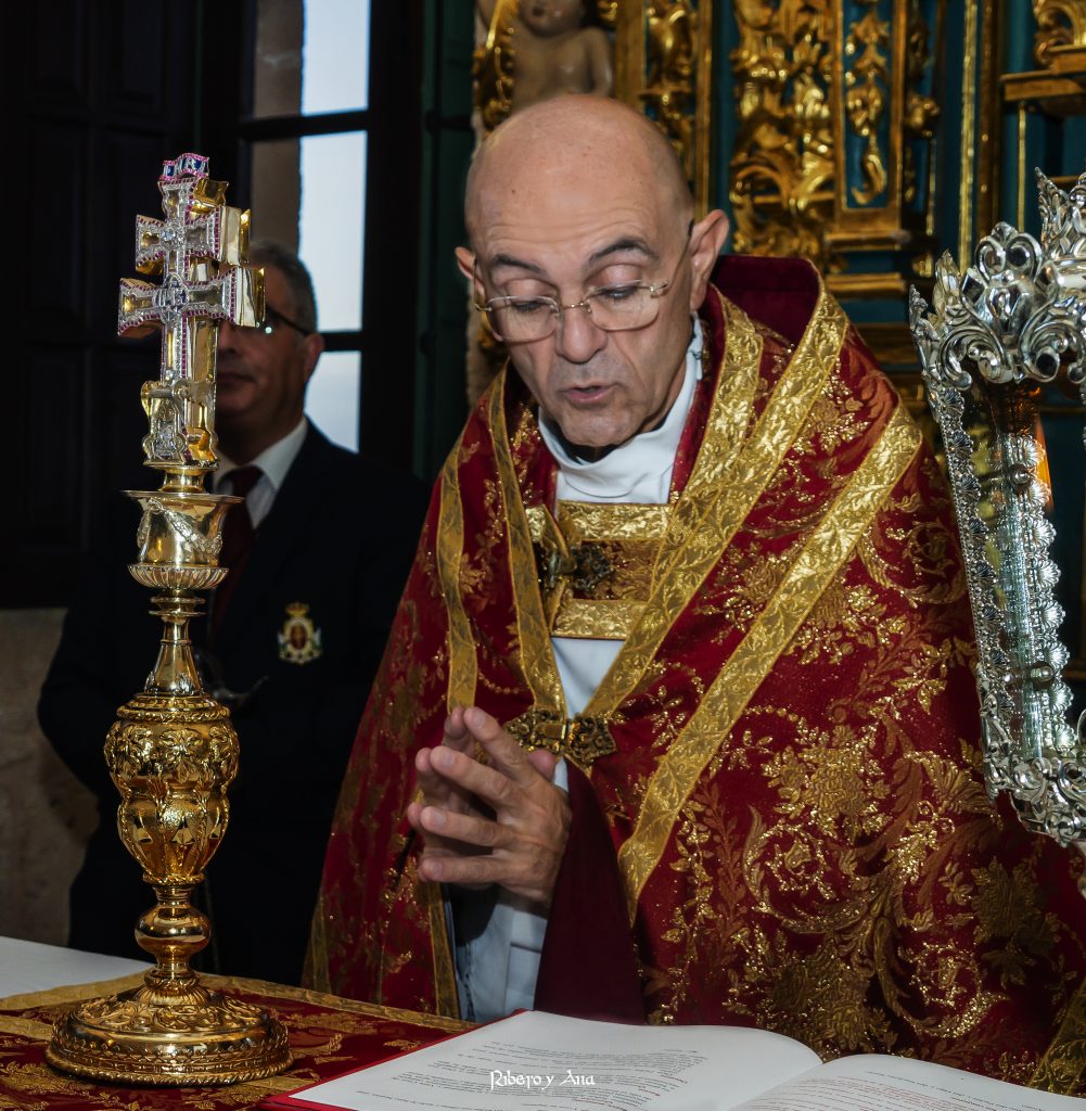 El Vicario D. David Martínez Robles procedió a la lectura del decreto del nombramiento de D. Tomás, y se firmó el acta correspondiente por parte del propio D. Tomás, Vicario, Hermano Mayor, Secretaria de Cofradía y Alcalde, haciéndose entrega al nuevo Rector del Portacruces y Relicario.